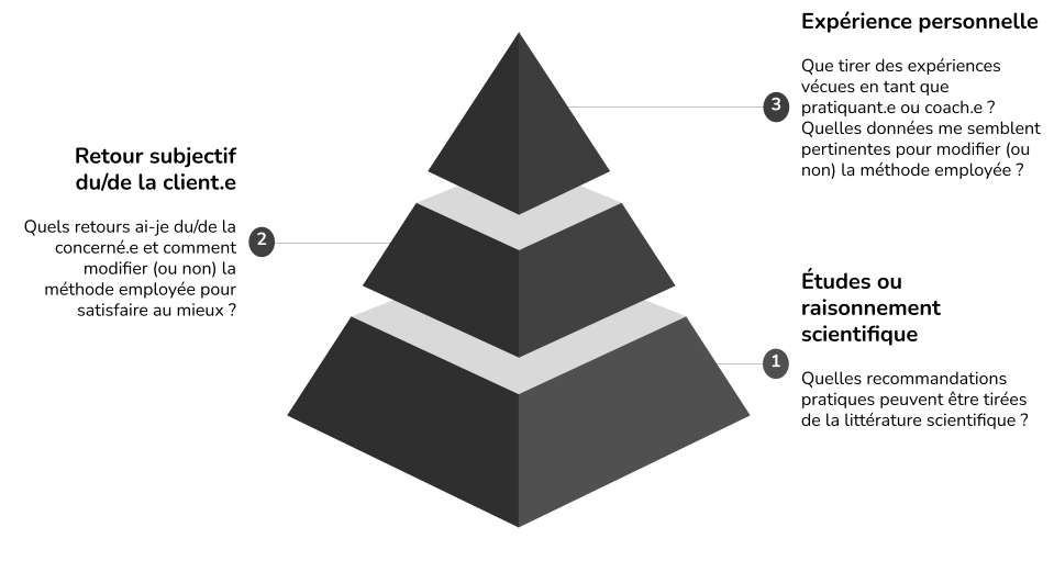 Le modèle EBP (evidence-based practice) est un modèle plutôt pyramidal qui pose comme fondement le contenu des études scientifiques (figure ci-dessous).